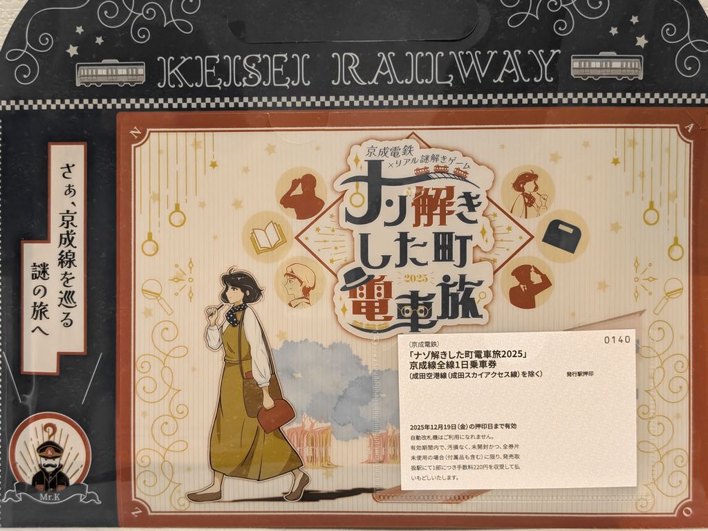 京成電鉄では、おそらく初めてとなる本格的な謎解きイベント「ナゾ解きした町電車旅2024」を12月10日まで開催しています。京成電鉄の一日乗車券(成田スカイアクセス線は乗車不可)がセットになった謎解きキット(3000円)とLINEを用いながら、京成線(支線も含む)の沿線各地を巡り謎を解き明かすというものです。謎解きキットは京成の主要駅で入手できます。