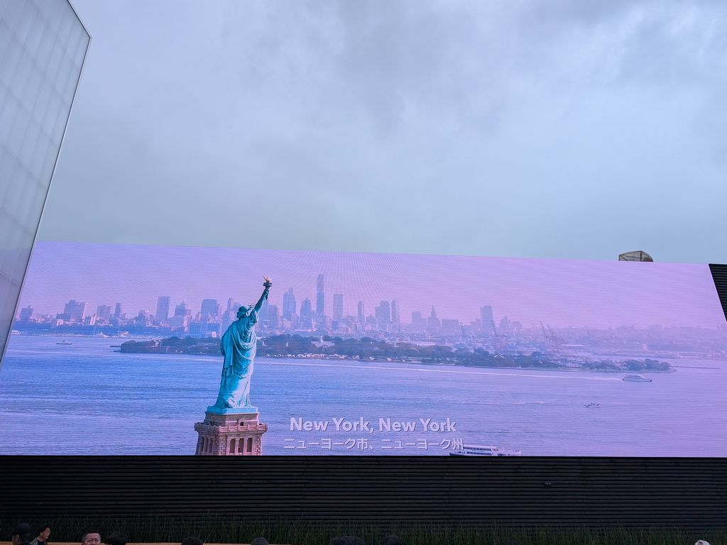 ちなみに建物前の待機列付近にある巨大ディスプレイには、アメリカ各地の街の映像が次々と映し出されます。誰もが知っている街から聞いたこともない街まで色々出てくるので、何個知っているかチェックしてみるといいかも。