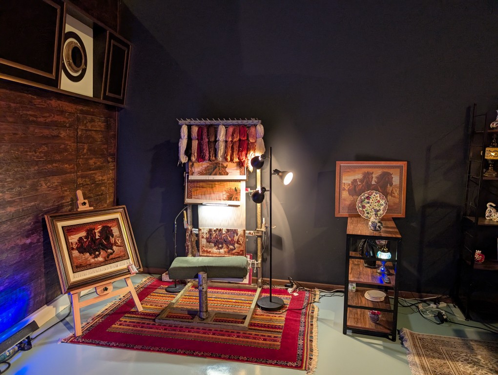 館内最初のエリアでは、サウジアラビアの様々なアーティストが作品制作を行う様子が流れます。展示内容は定期的に入れ替わっているようで、5月と8月では大きく違った内容となっていました。