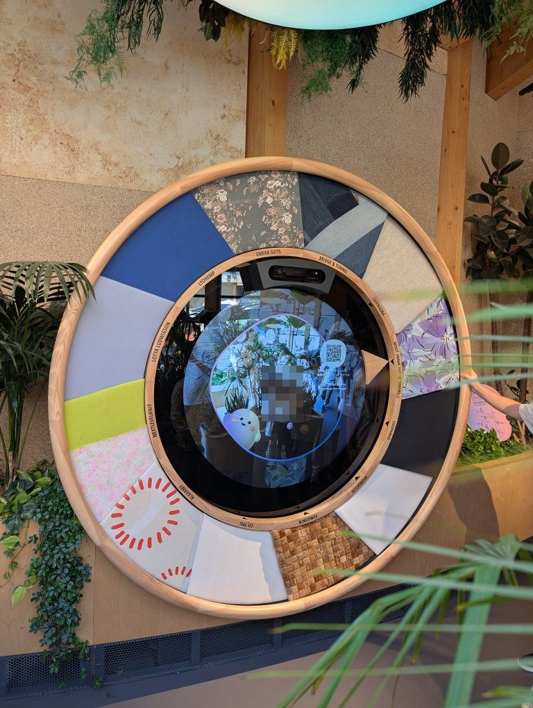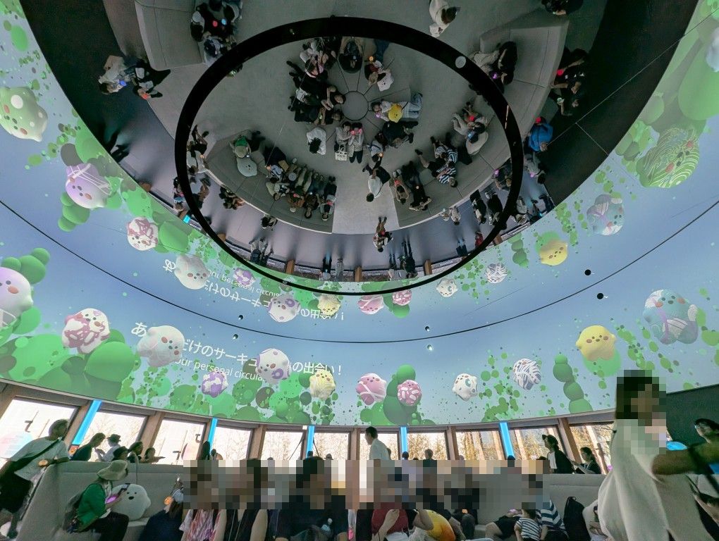 寝そべるエリアには、自分好みのデザインのサーキュラー君を作ることができる端末が用意されており、作ったものが天井の画面に表示されるようになっています。