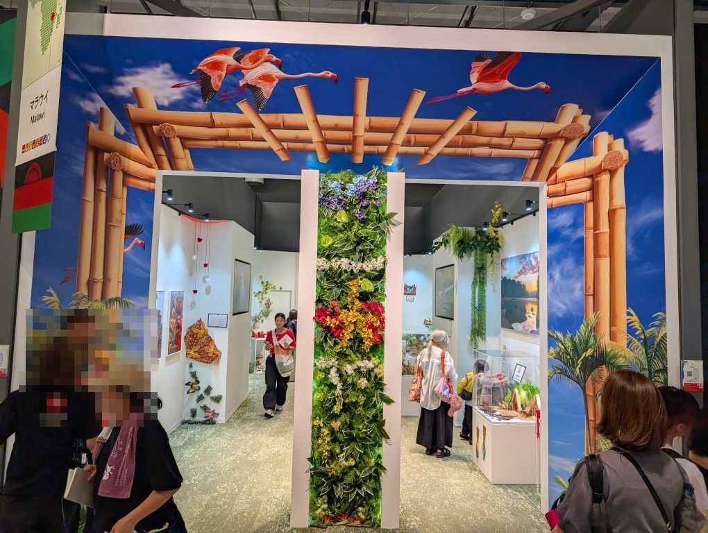 マラウイはアフリカ南東部の国。アフリカ諸国のブースではおなじみの、奇妙な顔をした木像がお出迎え。