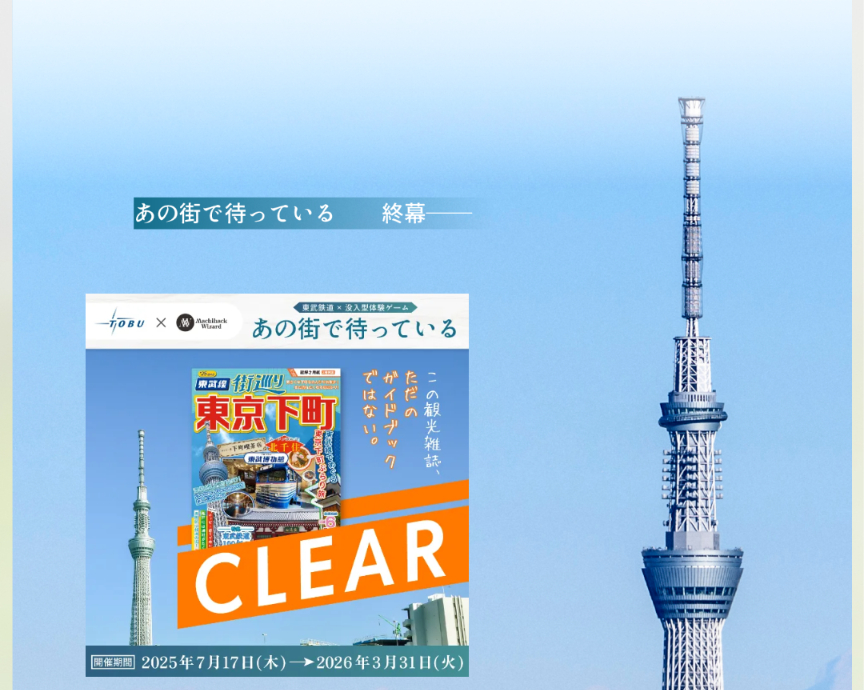 これまで本格的な謎解きイベントを行う機会の少なかった東武鉄道ですが、2025年春に「TRAIN:CHORD(トレインコード)」というイベントを開催したのに続いて、東京下町を題材とした謎解きイベントを2025年7月17日から2026年3月31日まで開催中です。