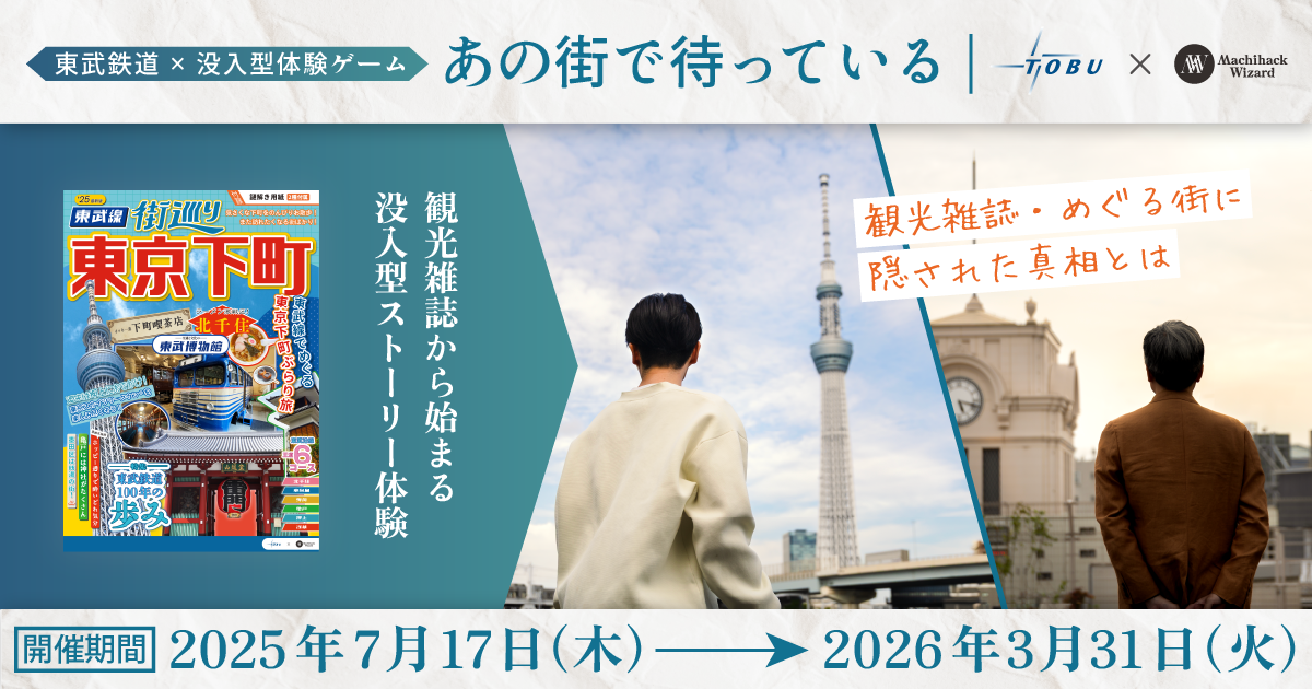 これまで本格的な謎解きイベントを行う機会の少なかった東武鉄道ですが、2025年春に「TRAIN:CHORD(トレインコード)」というイベントを開催したのに続いて、東京下町を題材とした謎解きイベントを2025年7月17日から2026年3月31日まで開催中です。