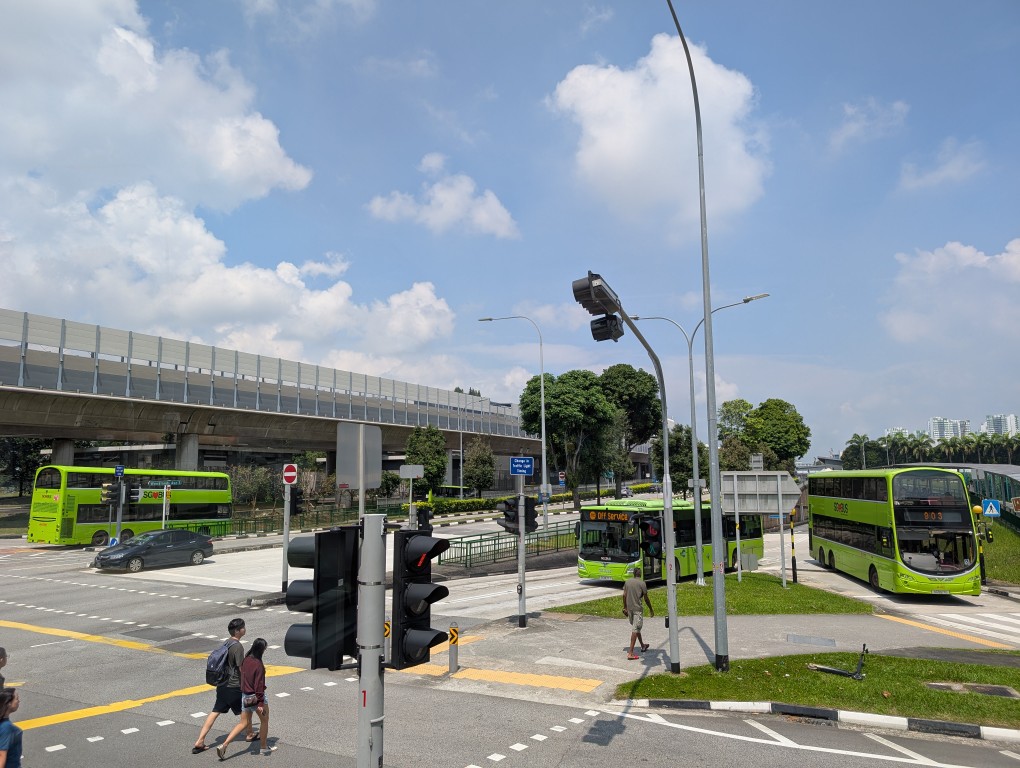 中心部から離れたWoodlandsエリアではありますが、沿道にはHDB(団地)が立ち並び、バスに乗り込んでくる客も多いです。最後はWoodlands駅の広大なバスターミナルに到着します。ここは室内型のバス待合室を備えた本格的なターミナルで、地域の交通結節点となっているようでした。
