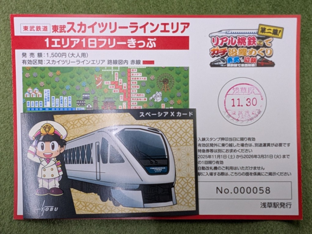 桃太郎電鉄の世界を本物の鉄道路線上で再現する「リアル桃鉄」の東武鉄道版(第二幕)に参加してきました。2026年3月末まで開催中です。