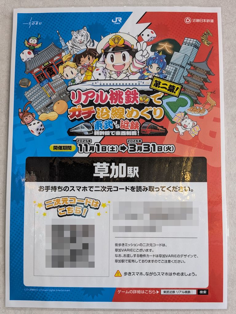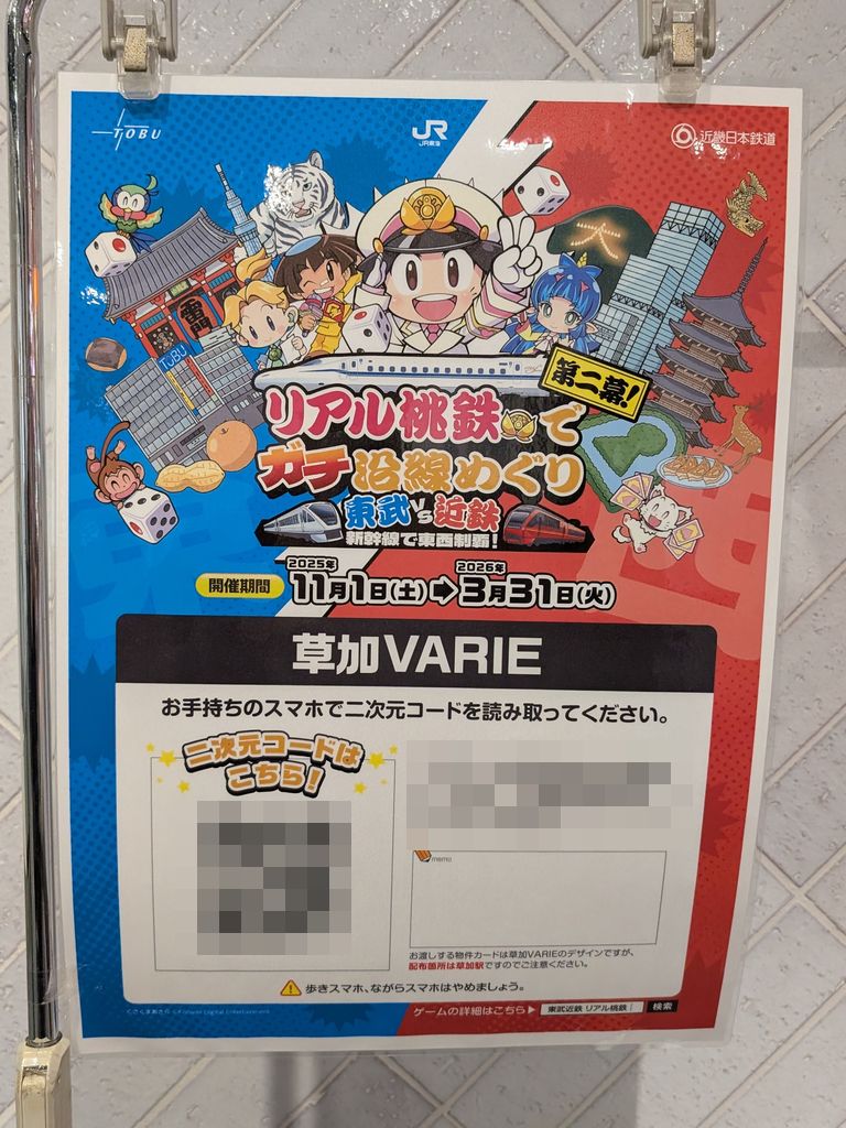 2025年11月1日(土)~2026年3月31日(火)東武VS近鉄 新幹線で東西制覇!実際の駅をめぐるリアル桃鉄イベント。電車に乗って駅をめぐり、資産を増やしてステキな賞品をゲットしよう!