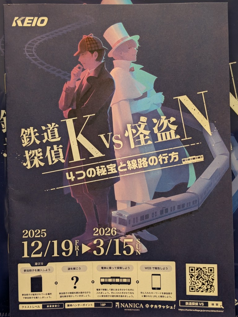 京王電鉄が主催する謎解きイベント「鉄道探偵K VS 怪盗N 4つの秘宝と線路の行方」に参加しました。難易度や所要時間・注意点などを説明します。