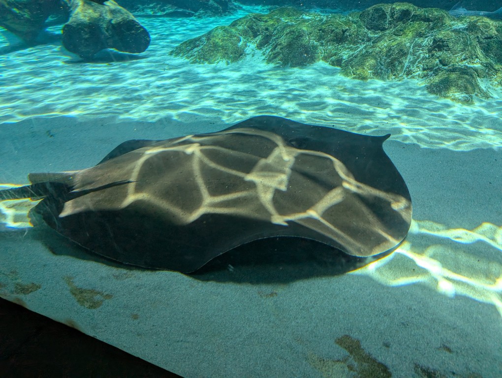 奇妙な柄のカエルやエイがいたり、巨大水槽の下を通り抜けたりと様々な展示がありました。一人だったのでそこそこ飛ばし気味に進みましたが、それでもトータル1時間半ぐらいは滞在していたようです。