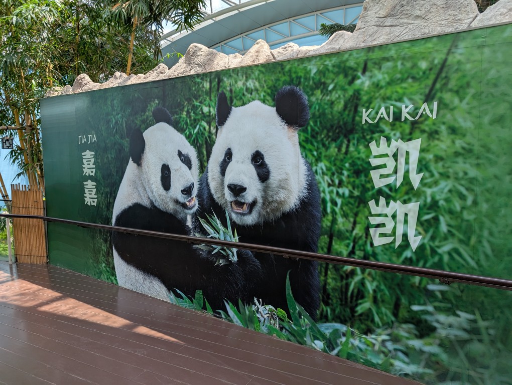 その手前にあるのがパンダの展示エリアです。ここにはカイカイとジャジャの2棟のパンダがいるそうです。このところの日中の外交問題もあったりして、2026年1月時点で国内でパンダを見ることはできなくなりましたが、このリバーワンダーは日本から手軽にパンダを見に行けるスポットの1つと言えそうです。台北の動物園にもパンダがいるそうなので、最も近いのはそちらでしょうが。