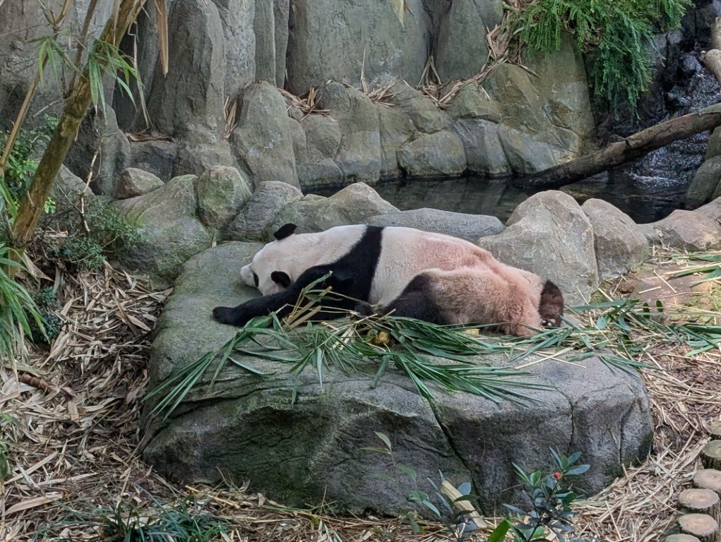 展示エリアには2頭のパンダがいて、思い思いにくつろいでいました。ドーム内には現地在住と思われる子供たちの団体や、世界各地からの観光客も集まっていて、やはりパンダはどの国でも人気があるんだなと実感しました。ちなみに、このエリアにはレッサーパンダもいました。