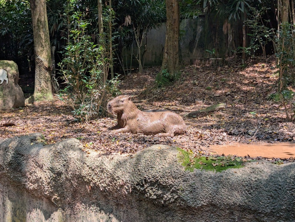 道中にはヒョウやカピバラなど数々の動物がいて、かなり近いところから観察することができます。もちろん「ジャングルクルーズ」とは異なり、全て本物なのはいうまでもありません。