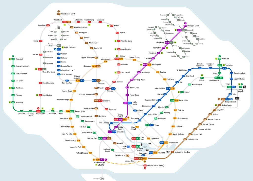 ちなみに、同じ環状路線である武蔵野線は府中本町から東京まで約100kmもあるので、サークル線はそれに比べればかなり短いです。そもそもシンガポールは東京23区とほぼ同じ面積なので、武蔵野線内にすっぽり収まってしまいます。