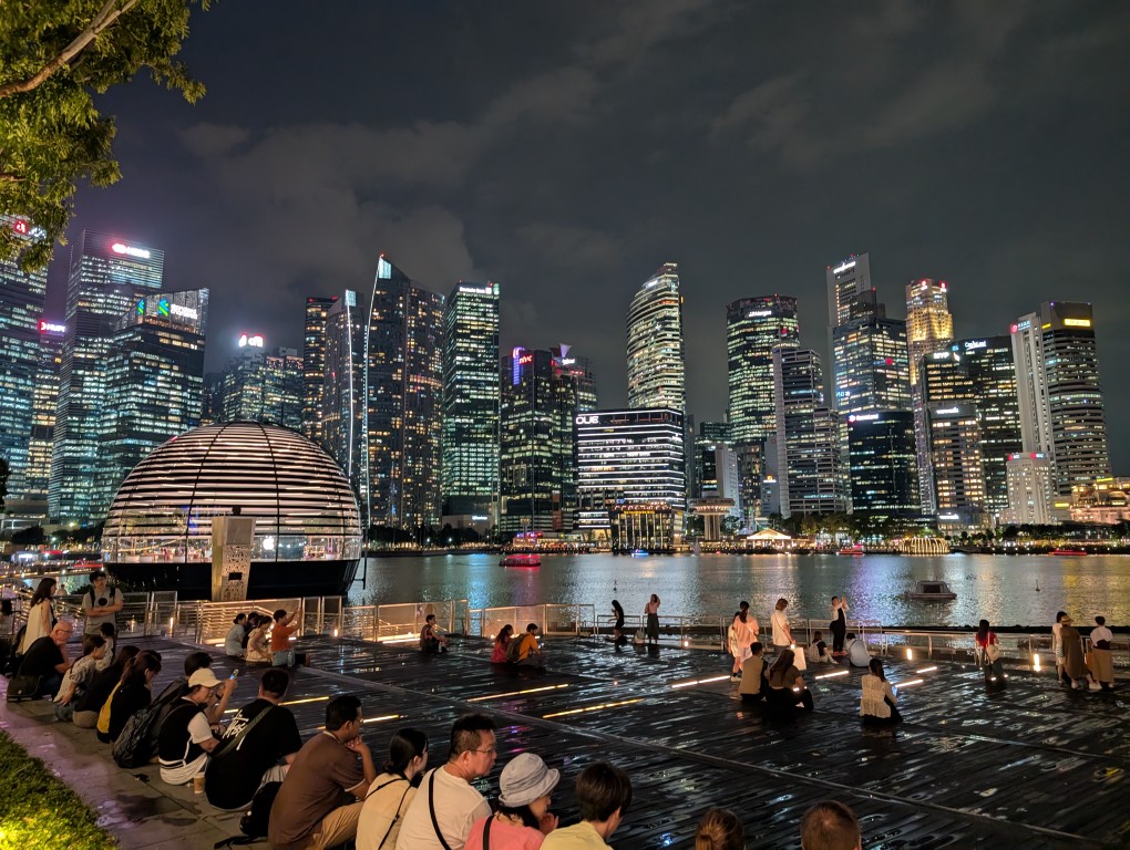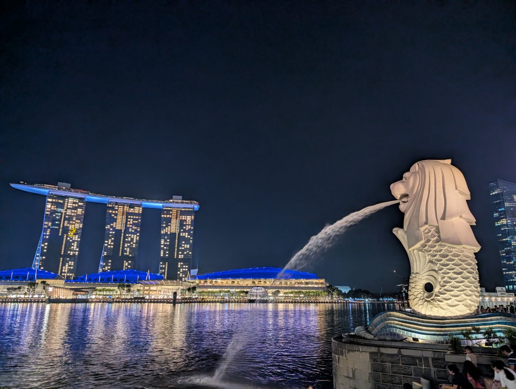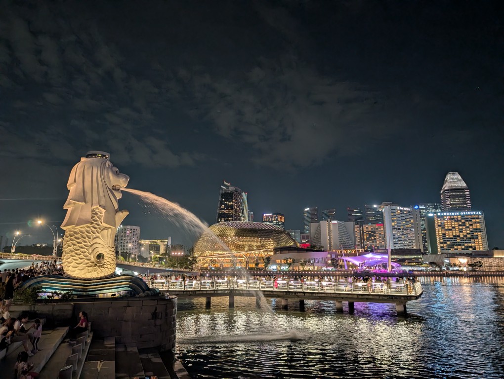 川沿いをひたすら進み、最後はマーライオン公園にやってきました。ここも昨年に引き続いての訪問ですがやはり絵になるスポットなので、夜遅いのに各国からの観光客が集結していました。