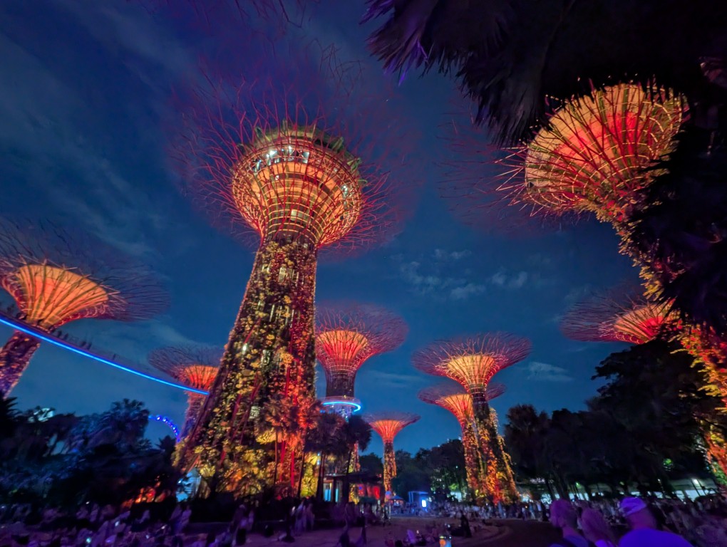 ショーが終わると一目散にマリーナベイサンズ内に入り、昼間も通ったガーデンズバイザベイへの通路に向かうエスカレーター(上記写真の奥の方)を登ります。ホテル棟の足元を抜けるとガーデンに入れるのですが、ガーデン内の通路が狭く、ショー直前になると流れが滞りがちになるのでご注意ください。