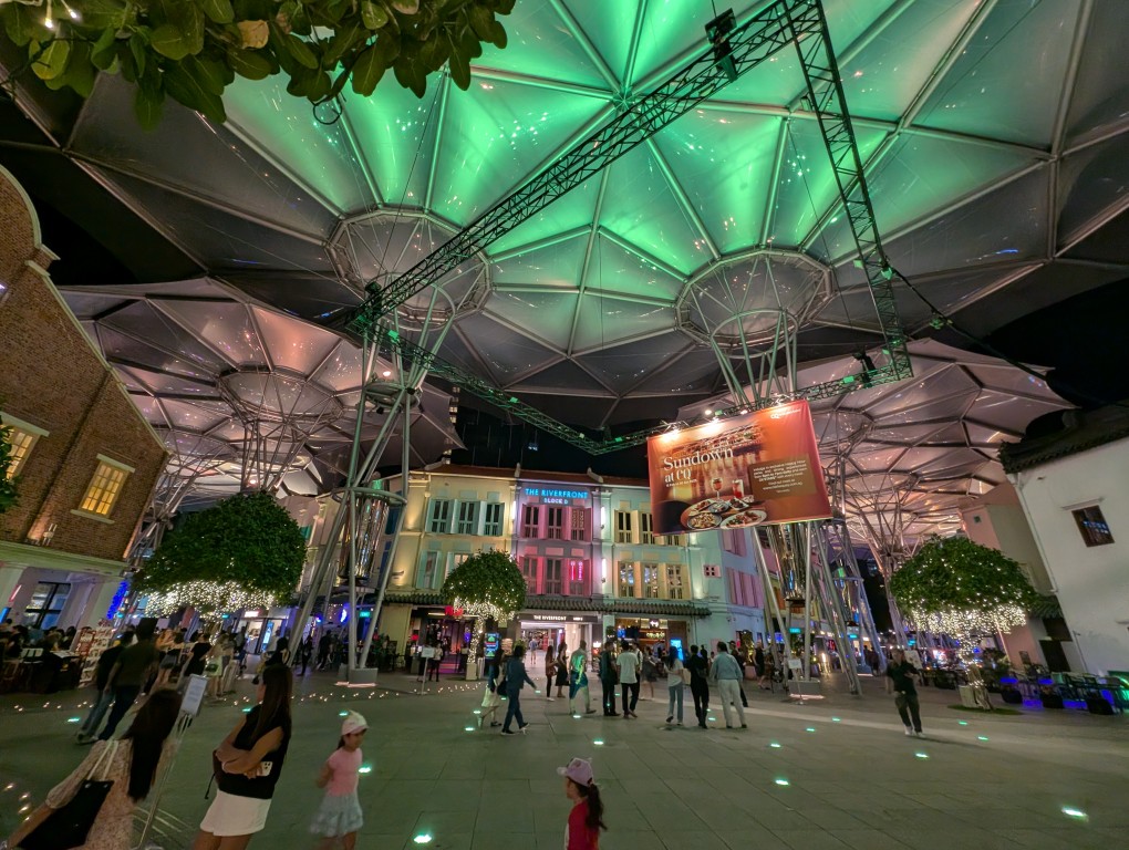 クラークキーの一部エリアはスコールや日差しを防ぐため、巨大な屋根が掛かっています。時刻はもう21時を回っていますが、まだまだ多くの観光客がいました。